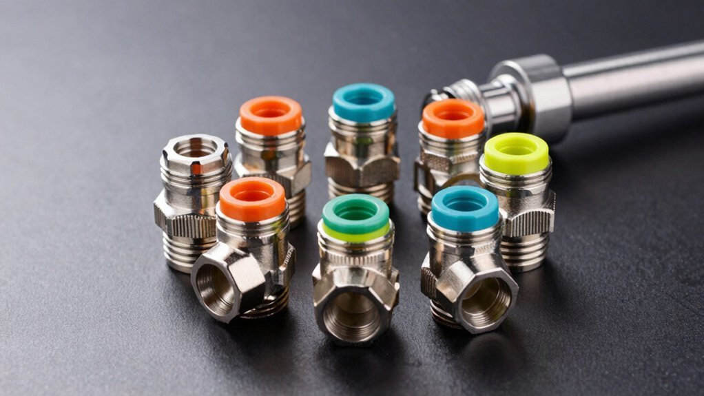 One key factor is the material’s ability to resist corrosion, and stainless steel tops the list. You’ll find that stainless‑steel quick connects outlast brass and other alloys because they form a protective oxide layer that repels water, chemicals, and salt. This resistance keeps the threads and seals tight, even after repeated exposure to harsh detergents and extreme temperatures. The alloy’s strength also prevents cracking or warping under high pressure, so you maintain a reliable seal for years. Precision machining adds exact tolerances, while advanced sealing technologies further guard against leaks. Choosing stainless steel means you avoid premature failure, reduce downtime, and keep your pressure‑washer system operating at peak efficiency.